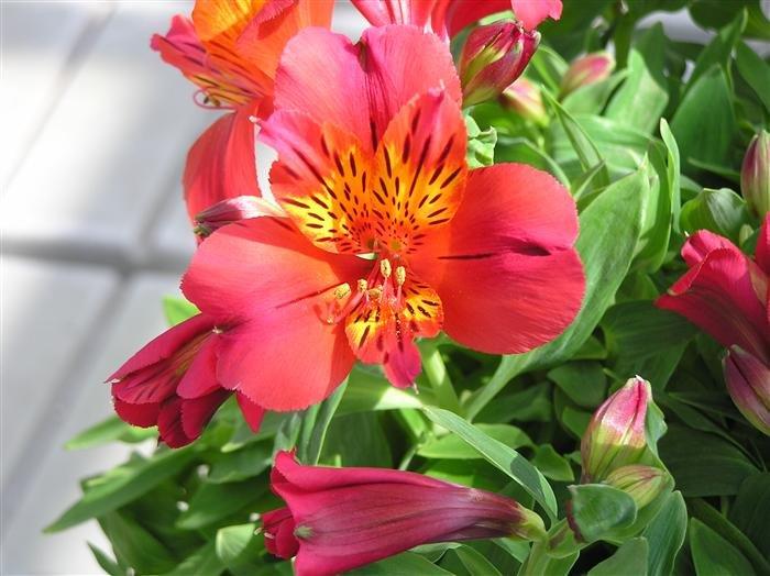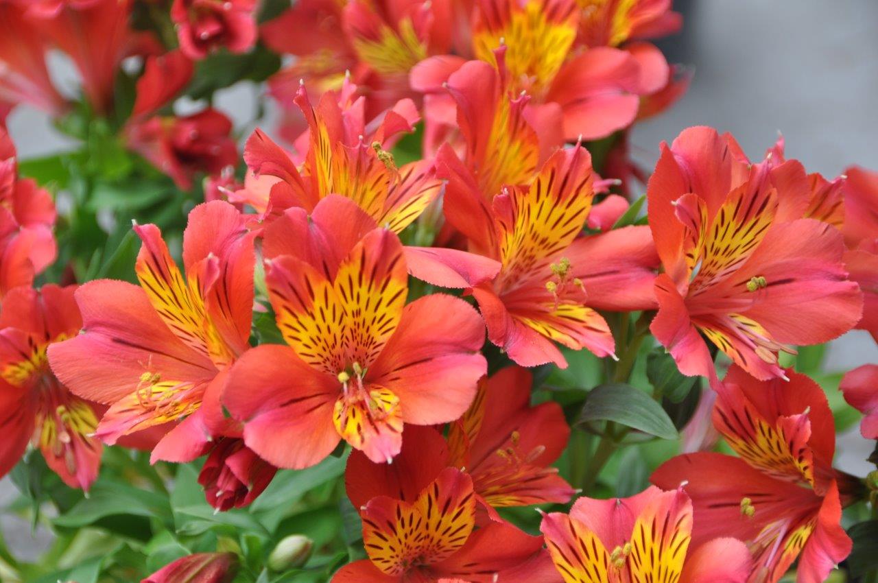 Alstroemeria Little Miss™ Vanessa is a breathtaking variety that has bright orange-red flowers with yellow throats and deep burgundy markings.