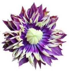 Stage three – Petals continue to open out from the bud, producing a dense, violet flower with pale green tips.