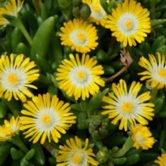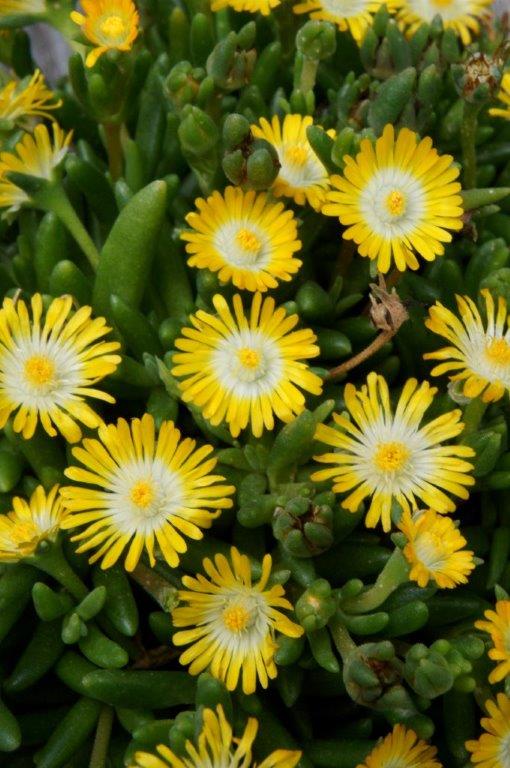 Delosperma Jewel of Desert™ Peridot has small yellow flowers with bright white centers that appear from August to April.