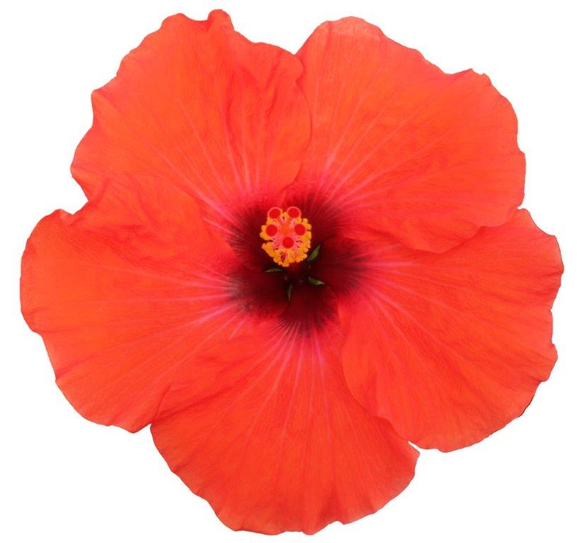 Hibiscus HibisQs® Adonicus Orange has rich orange flowers with deep crimson centers.