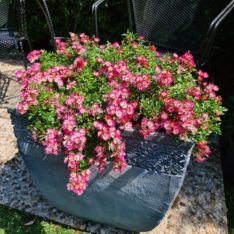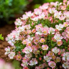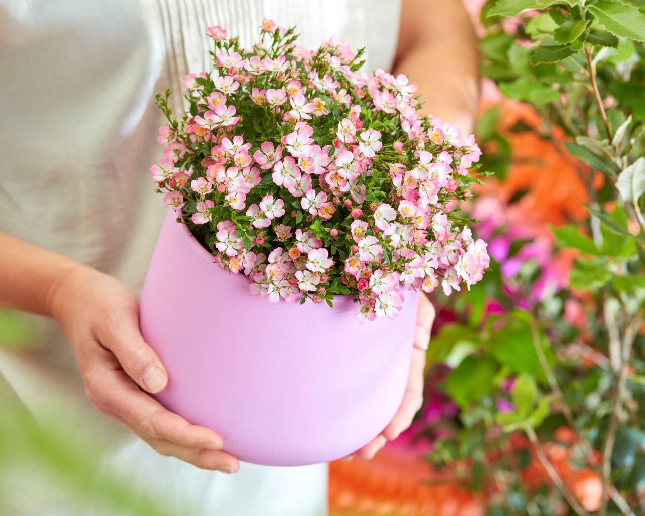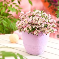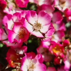 Rosa Cutie Pie™ is a new miniature Rose which produces a mass of button sized pink and white flowers.